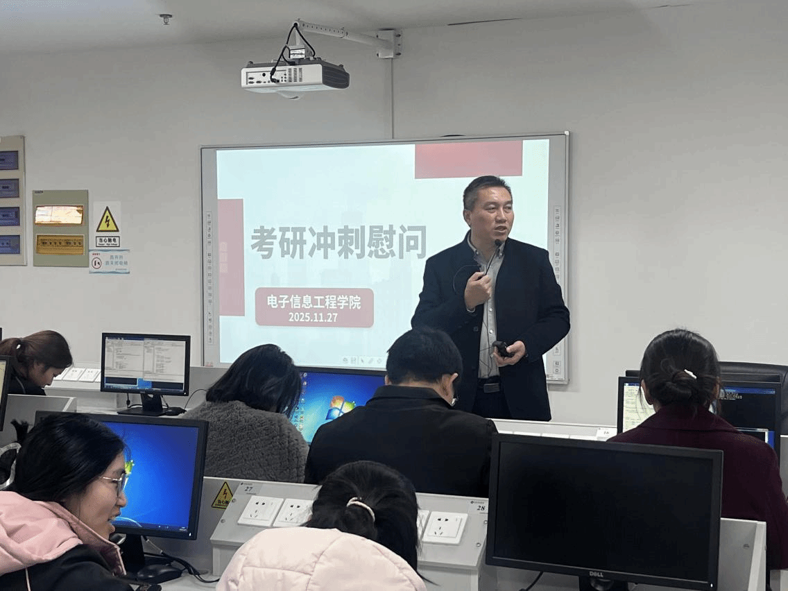 2025年11月27日,电子信息工程学院精心组织开展“考研冲刺慰问”活动,为即将踏上2026年硕士研究生招生考试考场的学子们送上关怀与鼓励。学院党委书记徐志国、院长胡国兵、党委副书记陈智慧、副院长杨娟及辅导员郭晓出席了活动,全体备战考研的26届学生参与了活动。