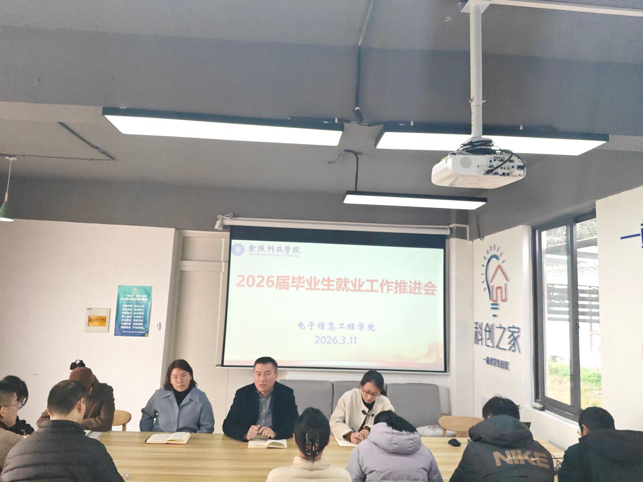 为抢抓春招机遇,压实就业责任,推动2026届毕业生高质量就业,3月11日上午,电子信息工程学院在北区02栋“一站式”学生社区召开2026届毕业生就业工作推进会。学院党委书记徐志国、副书记陈智慧、副院长杨娟、各系主任、毕业班辅导员和班主任以及毕业生代表参加会议。会议由学院党委副书记陈智慧主持。