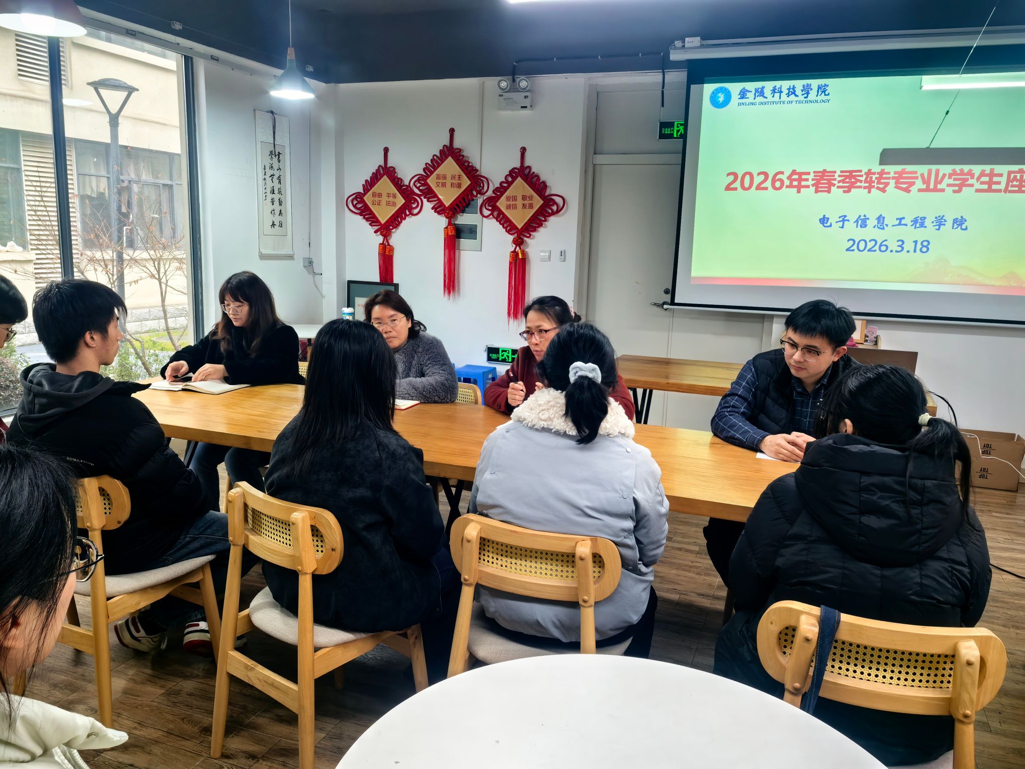 为帮助转专业学生快速适应新专业、融入新集体,明晰学业发展方向,切实解决学生在专业过渡中的困惑与诉求,3月18日下午,电子信息工程学院在北区04栋“一站式”学生社区召开2026年春季转专业学生座谈会。学院党委副书记陈智慧、副院长杨娟、教务查慧慧老师、辅导员征文维老师以及26年春季转专业同学参加会议。会议由学院党委副书记陈智慧主持。